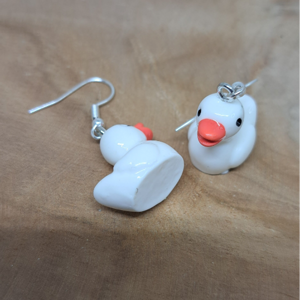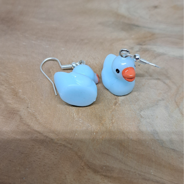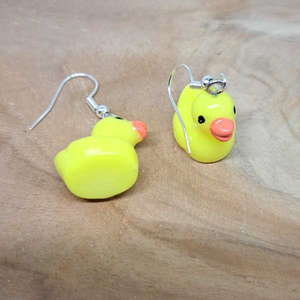 Deze oorbellen hebben als hangers badeendjes.