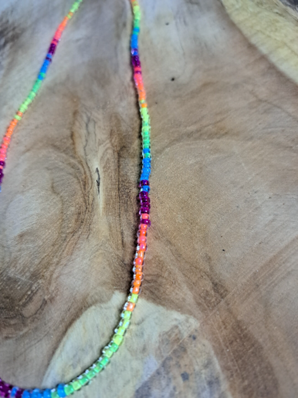 Deze ketting is geregen met glaskralen.De sluitingen zijn gemaakt met RVS en het rijgdraad is van crystaldraad.de lengte van de ketting is 45CM